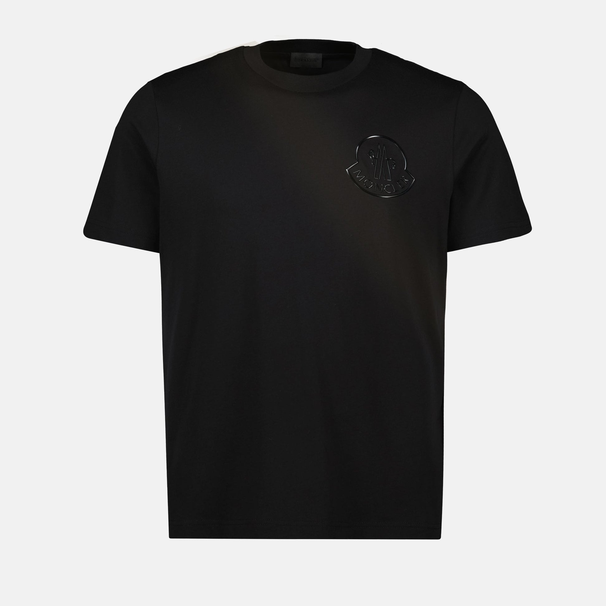 Black logo T-shirt from the brand Moncler, designed for men. This model is part of the Autumn-Winter 2025 collection and is made from cotton jersey.