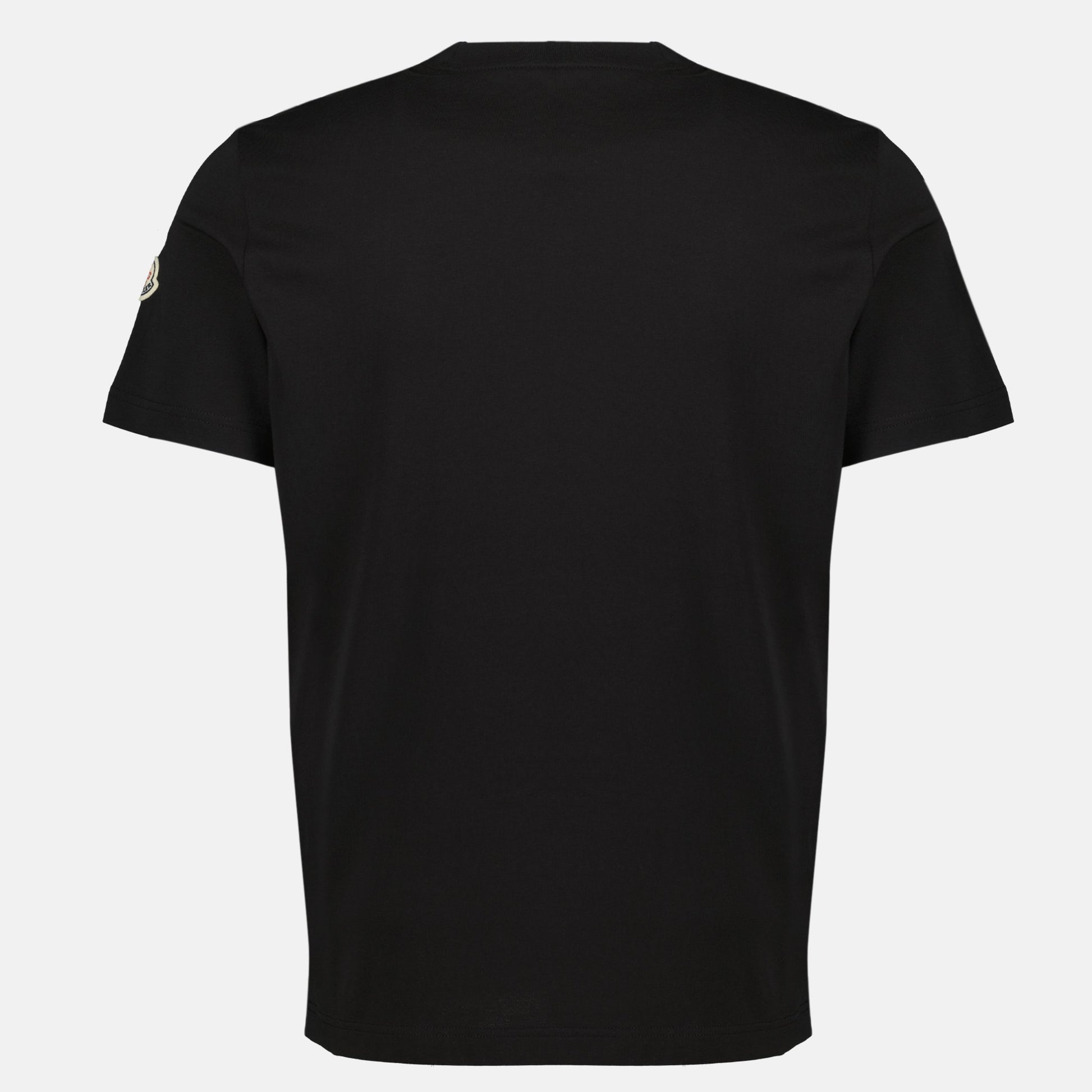 Black monogram T-shirt from Moncler for men. Part of the Autumn-Winter 2025 collection, it is made of organic cotton with a felt logo on the sleeve.