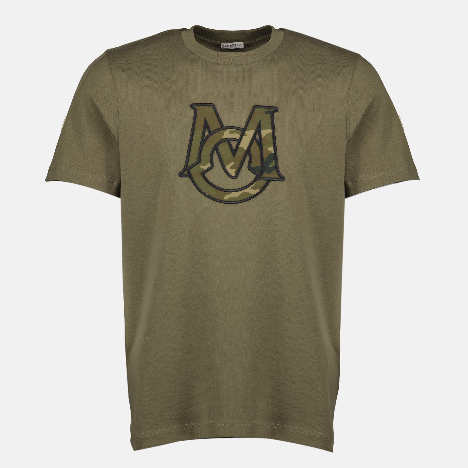 Kaki monogram T-shirt by Moncler for men. This model is part of the Autumn-Winter 2025 collection and is made from organic cotton.