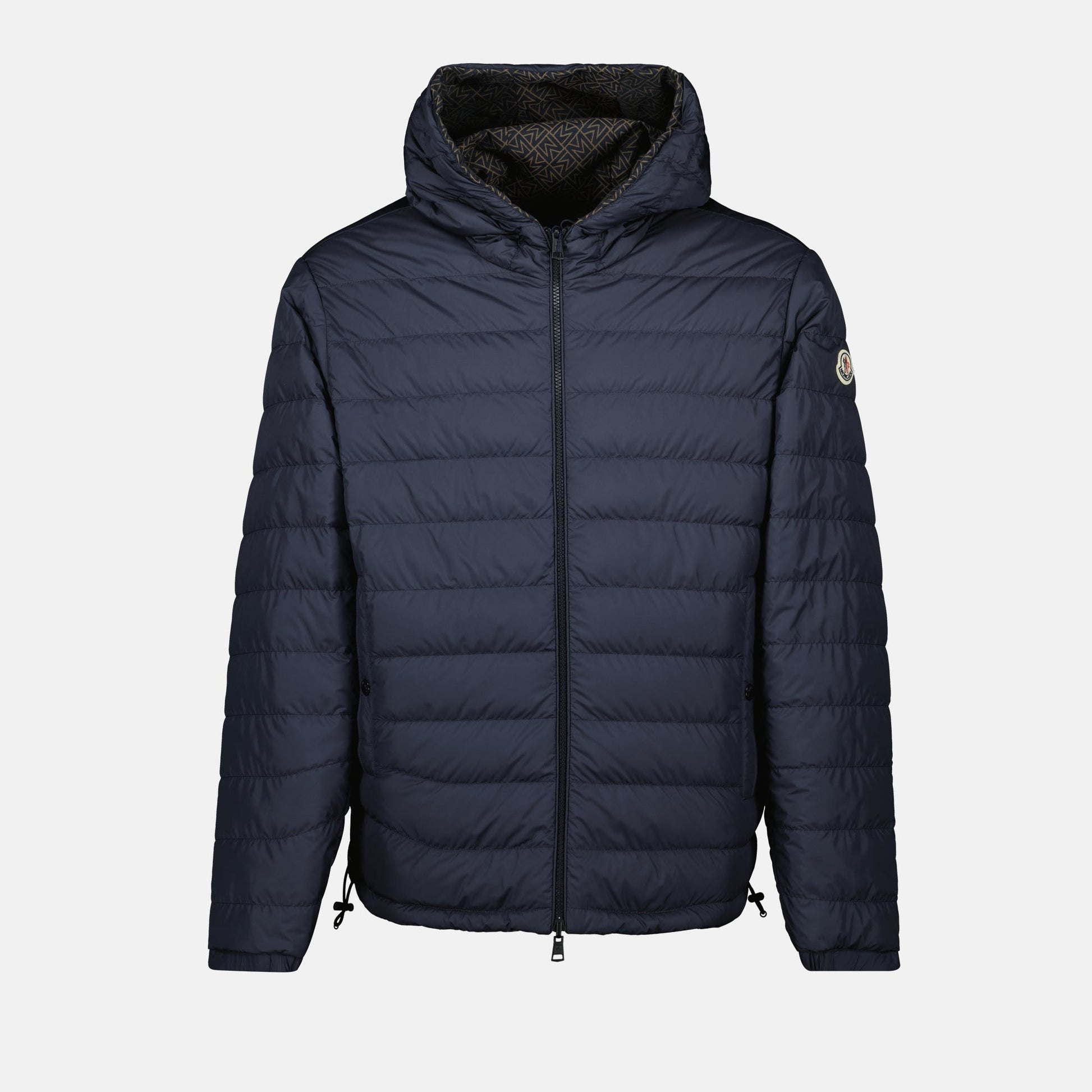 The navy blue Guery reversible jacket from Moncler is designed for men. It is part of the Spring-Summer 2025 collection and combines style and comfort with its down padding.