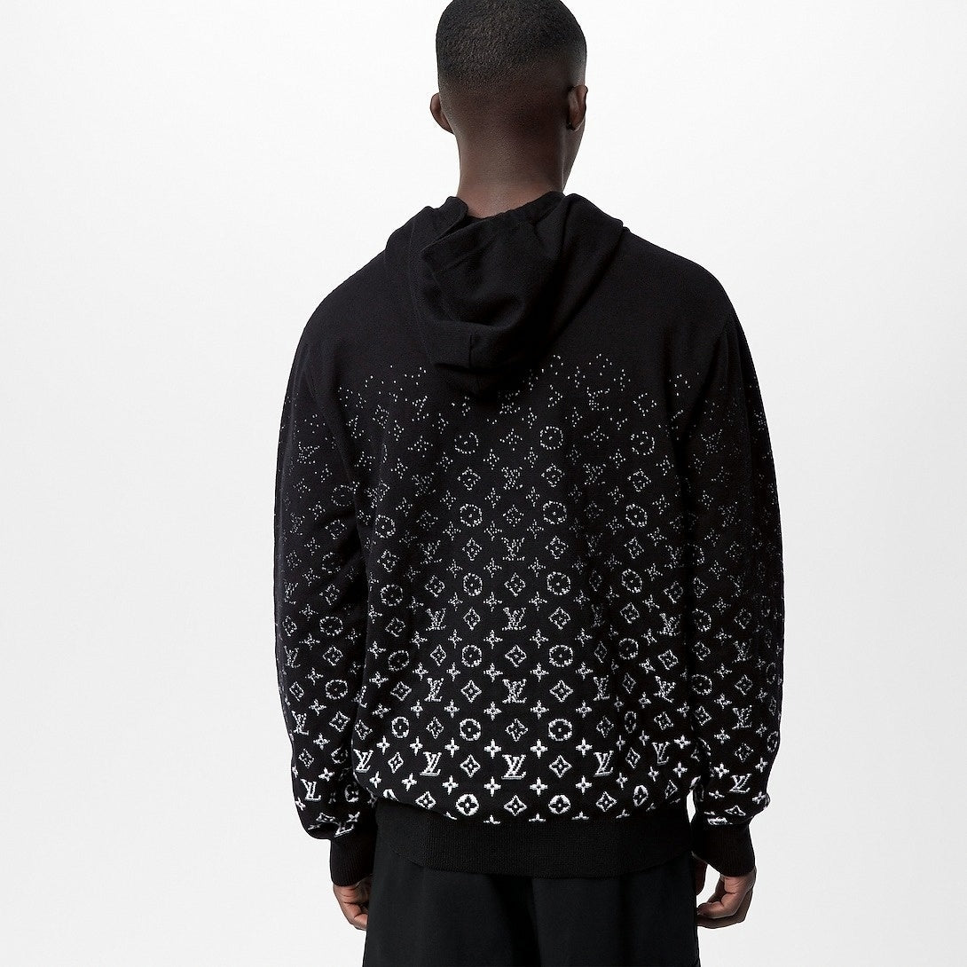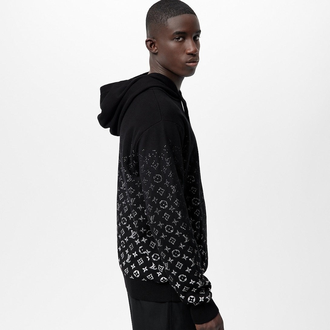 A refined take on streetwear, this black hoodie is elevated with a contrasting white Monogram motif that fades in a gradient effect, adding depth and sophistication to a wardrobe essential. Cut from luxuriously soft mercerized cotton, the silhouette is slightly relaxed for everyday comfort while maintaining an elegant edge. Details include an adjustable hood with knit drawstring and ribbed cuffs and hem for a polished finish.