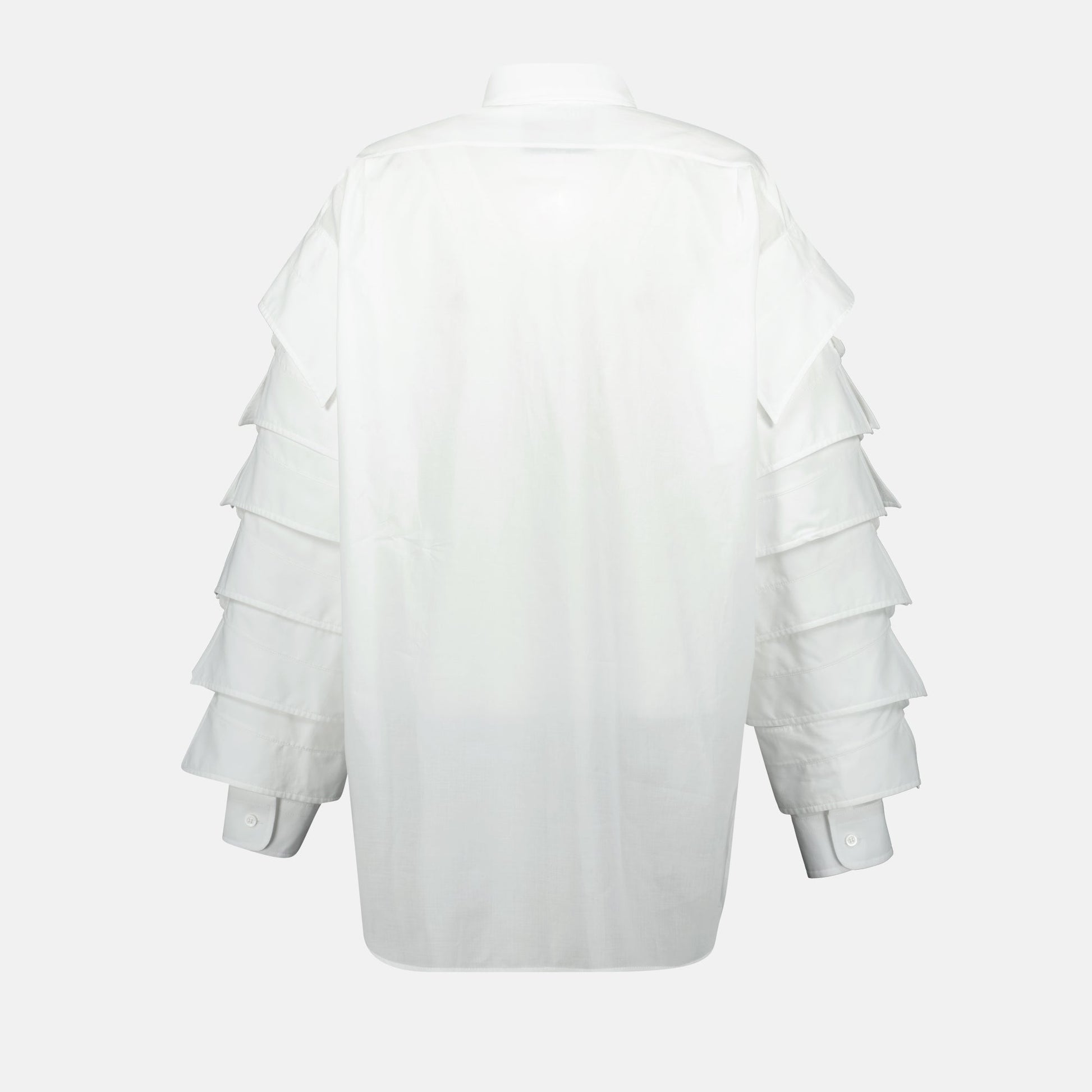 White collared shirt by Moschino for women, made from cotton with a straight and long fit. This piece is part of the Spring-Summer 2025 collection.