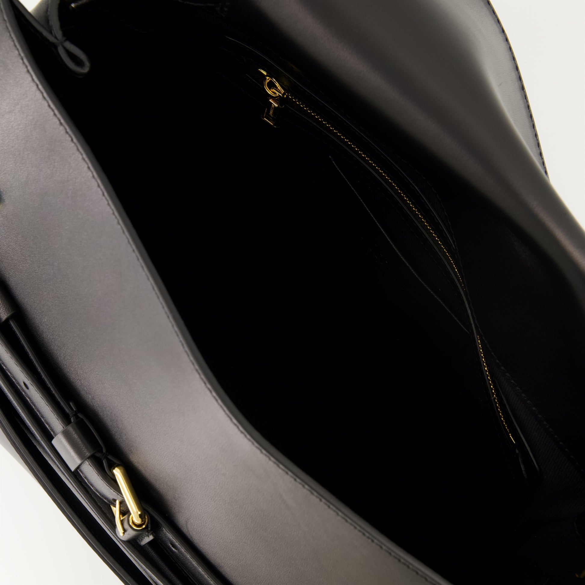 Sac Tie Me medium in cappa leather from Moschino, designed for women. This model is part of the Spring-Summer 2025 collection and is made from black nappa leather.
