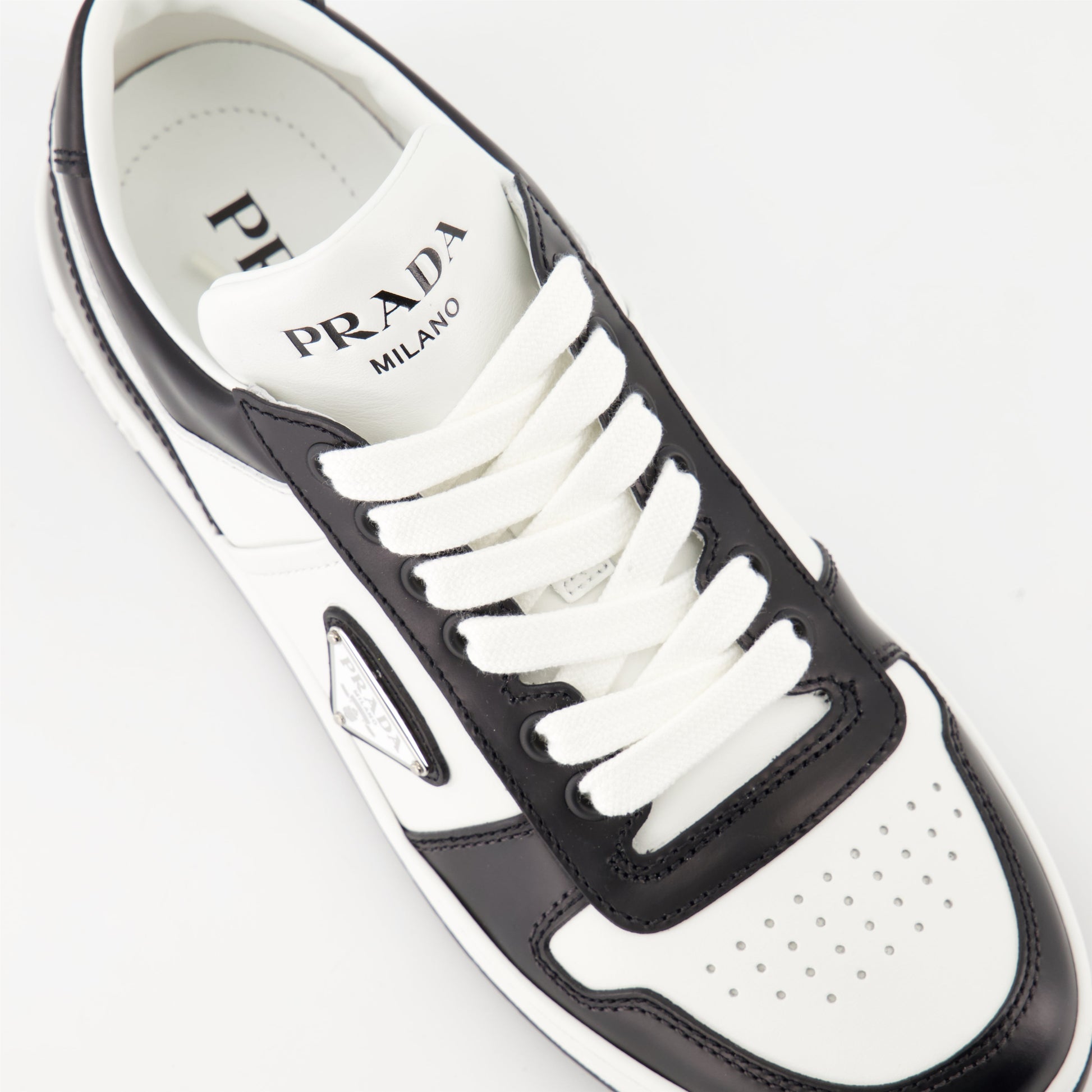 Downtown sneakers from the Prada Autumn-Winter 2024 collection for women. Made of smooth leather. Article in Black. Round toe and rubber treaded sole.