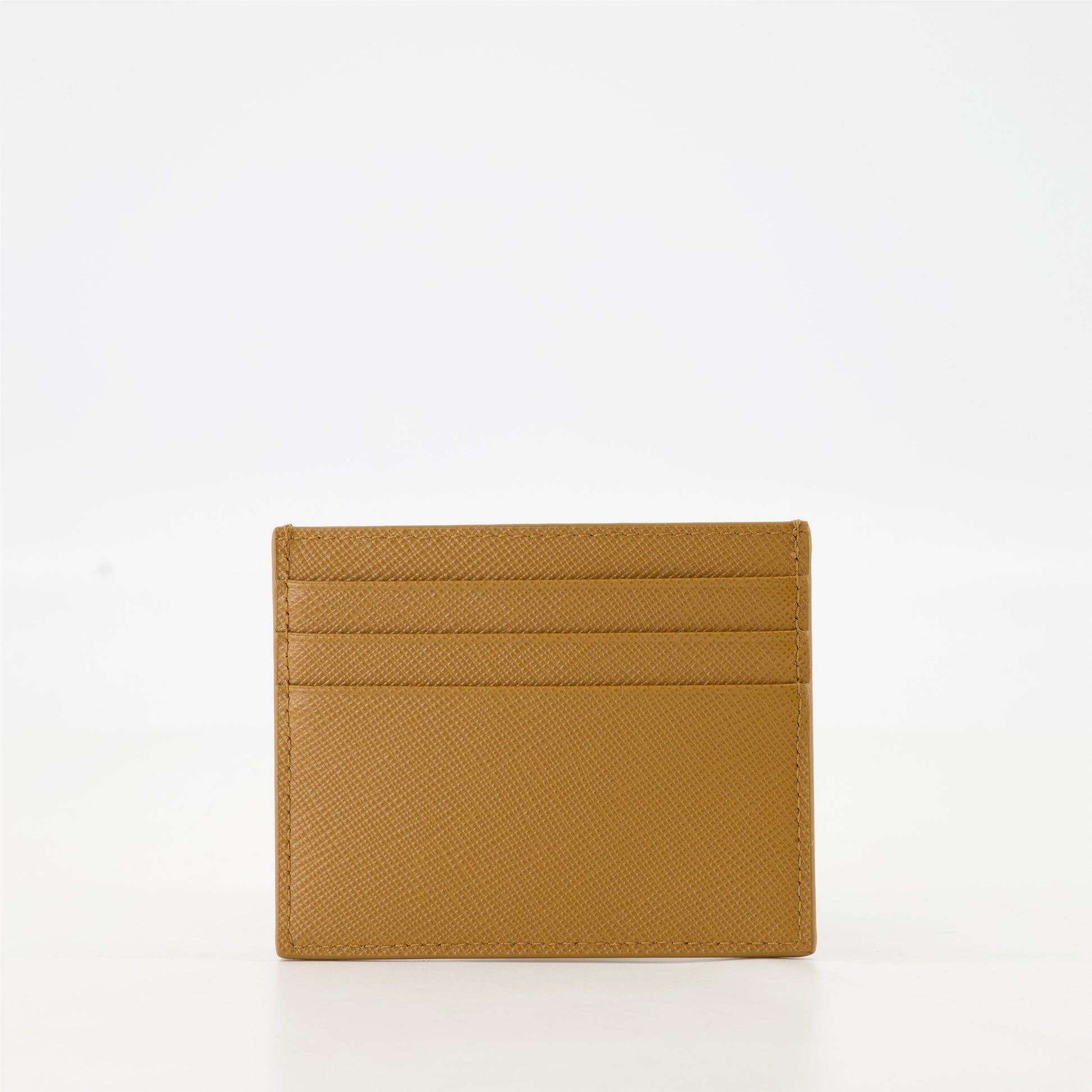 Saffiano leather camel card holder from Prada for women, blending elegance and functionality. This piece is part of the Spring-Summer 2025 collection, perfect for fans of refined fashion.
