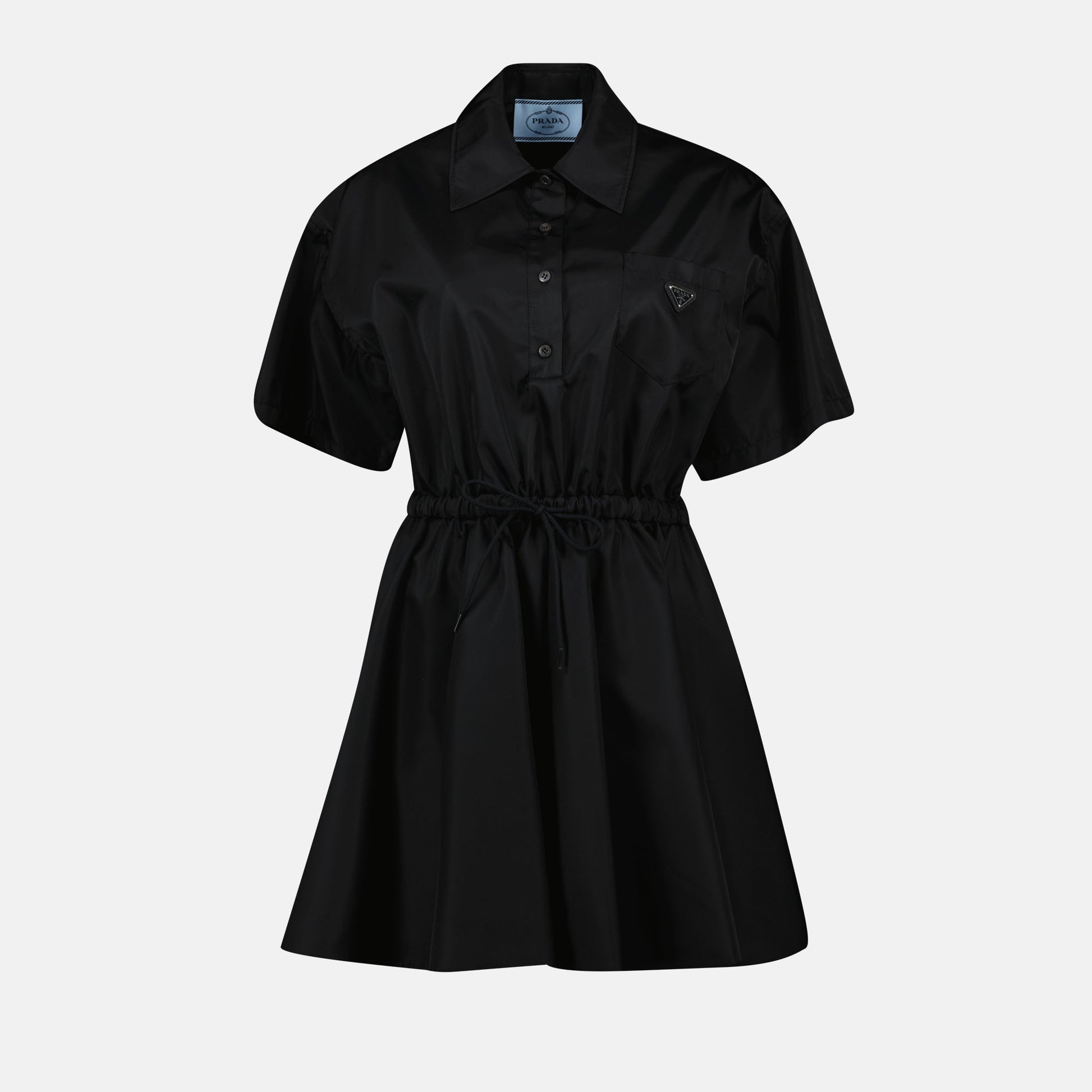 Black Re-Nylon dress from Prada for women, made from recycled nylon. This piece is part of the Spring-Summer 2025 collection, combining style and sustainability.