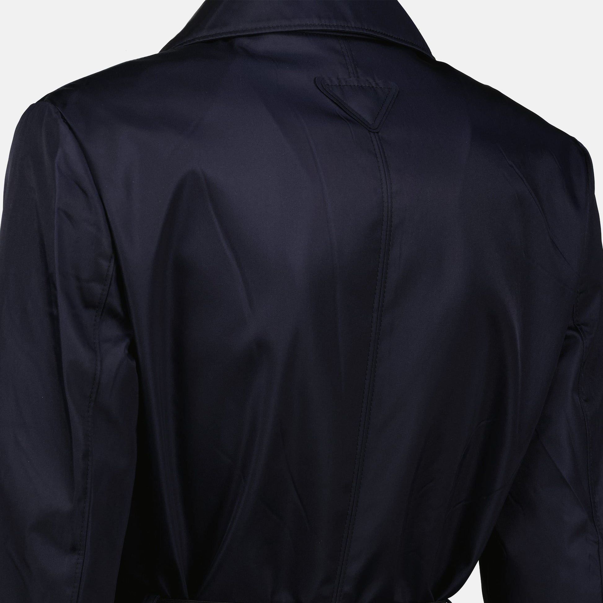 Re-nylon trench with belt from Prada for women. This piece is part of the Fall-Winter 2025 collection and is made of recycled nylon.
