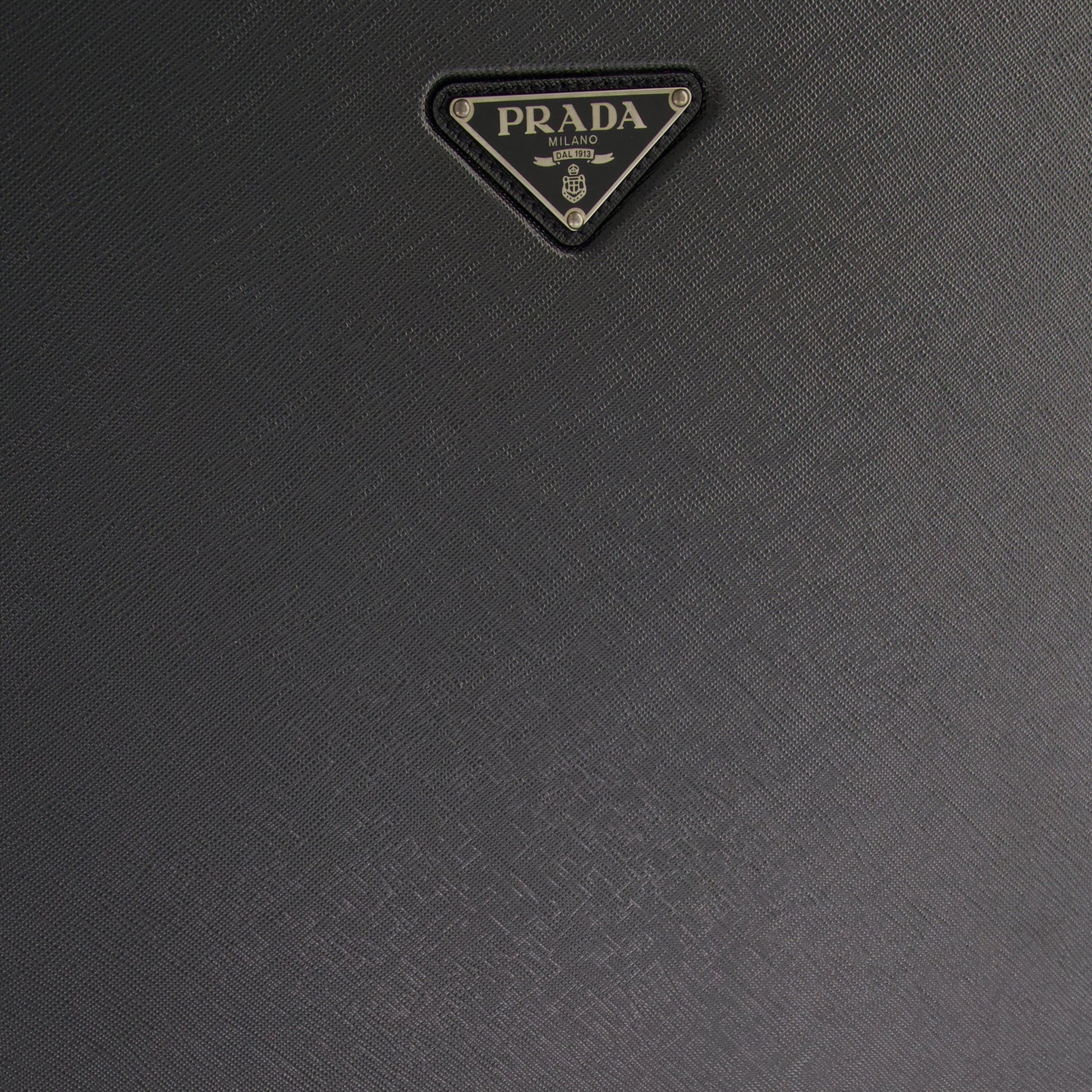 Wheeled suitcase in leather by Prada, designed for men, combines elegance and functionality. This piece from the Spring-Summer 2025 collection is ideal for cabin travel.