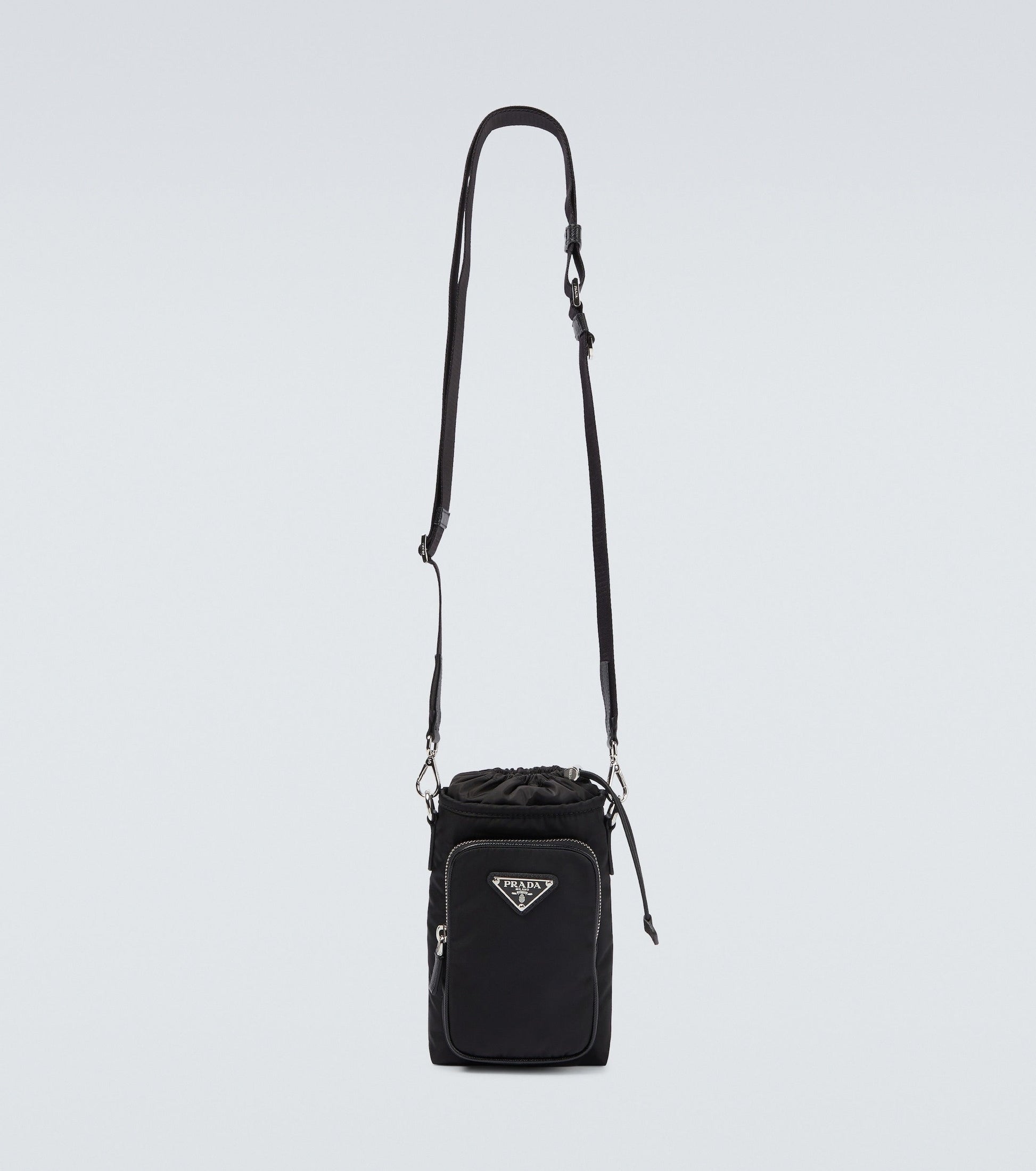 Crafted from Re-Nylon, this Prada phone case features two zippered compartments, an adjustable strap, and the brand's iconic triangle emblem on the front.