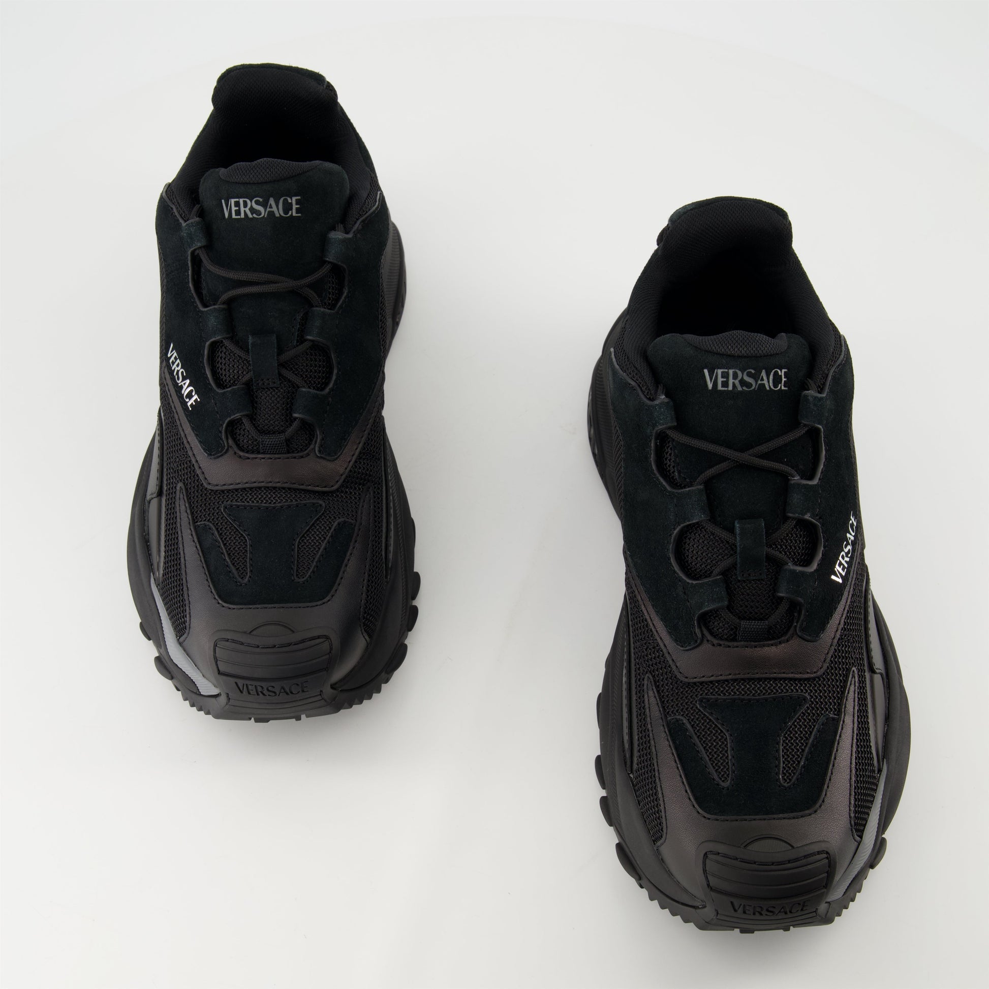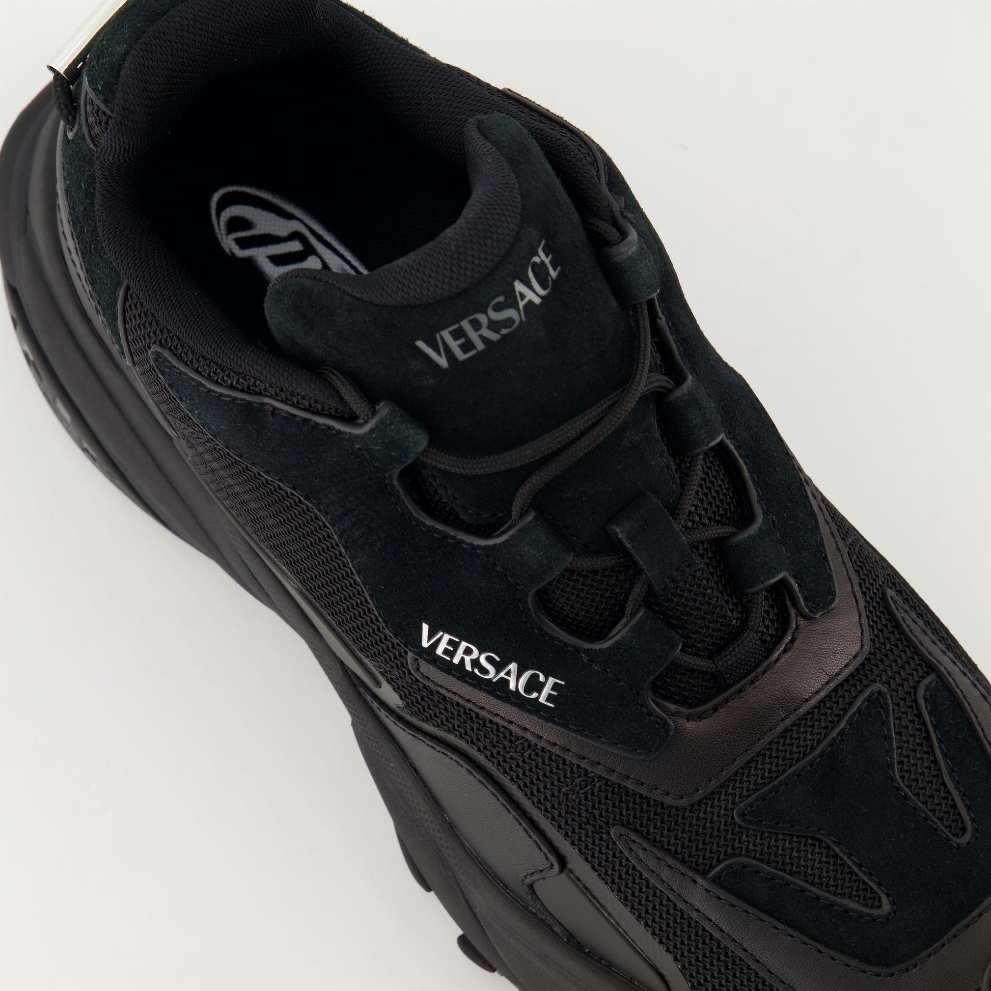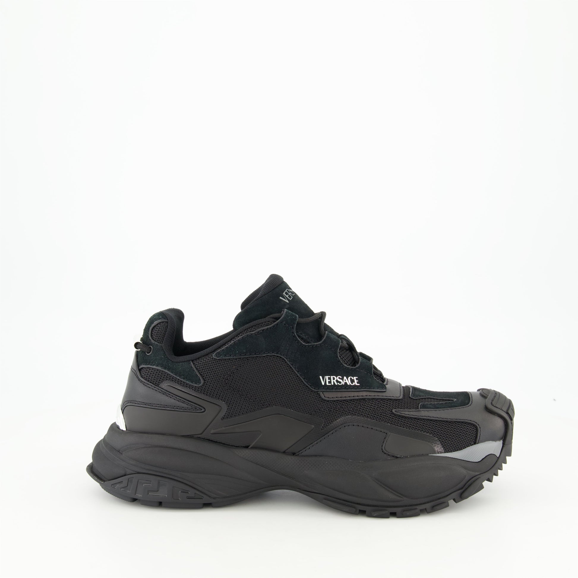 Mercury M_VS_04 sneakers by Versace, made of goatskin leather and black technical fabric, for men. This shoe is part of the Spring-Summer 2025 collection.