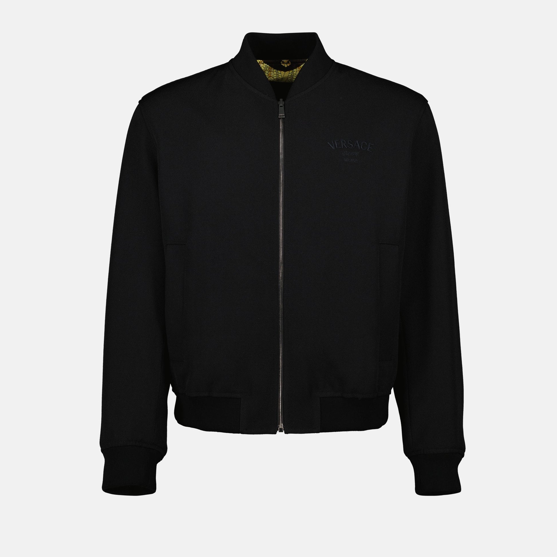 The Reversible Barocco Bomber by Versace is a men's garment from the Fall-Winter 2024 collection. It features a unique design with leopard and black prints.