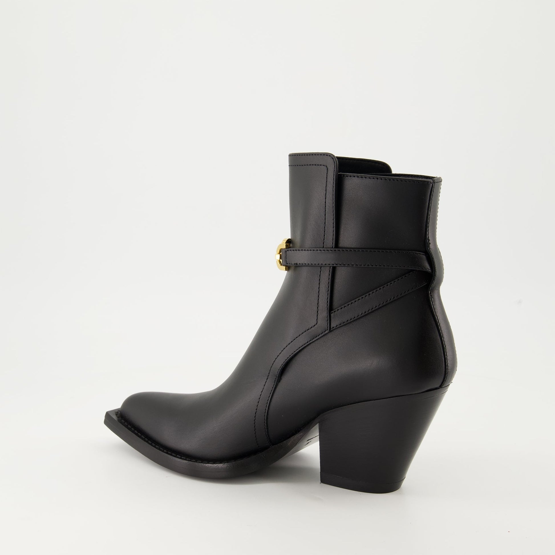 Medusa '95 Ankle Boots Versace Fall-Winter 2024 collection for Women. Made of smooth leather. Item Color: black. Pointed toe and leather sole.